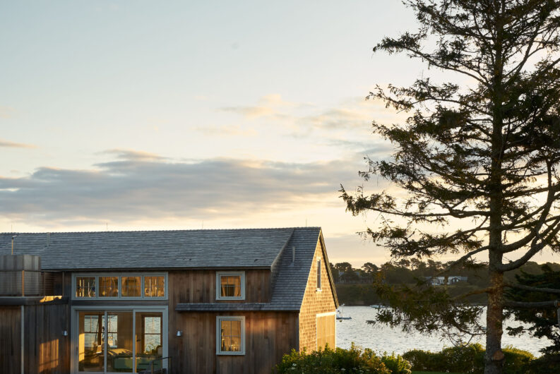 Entry door with view to ocean horizon by Hutker Architects