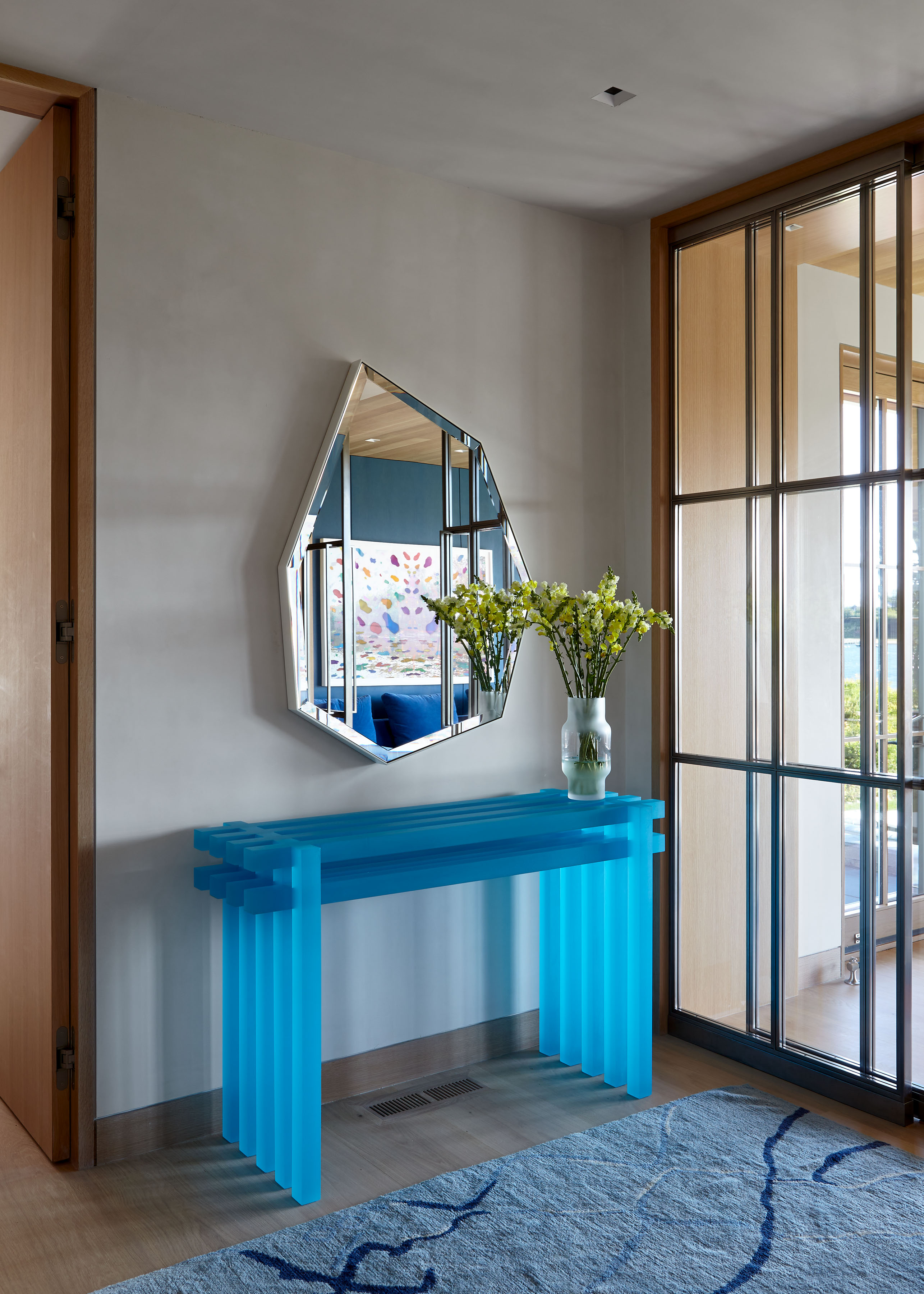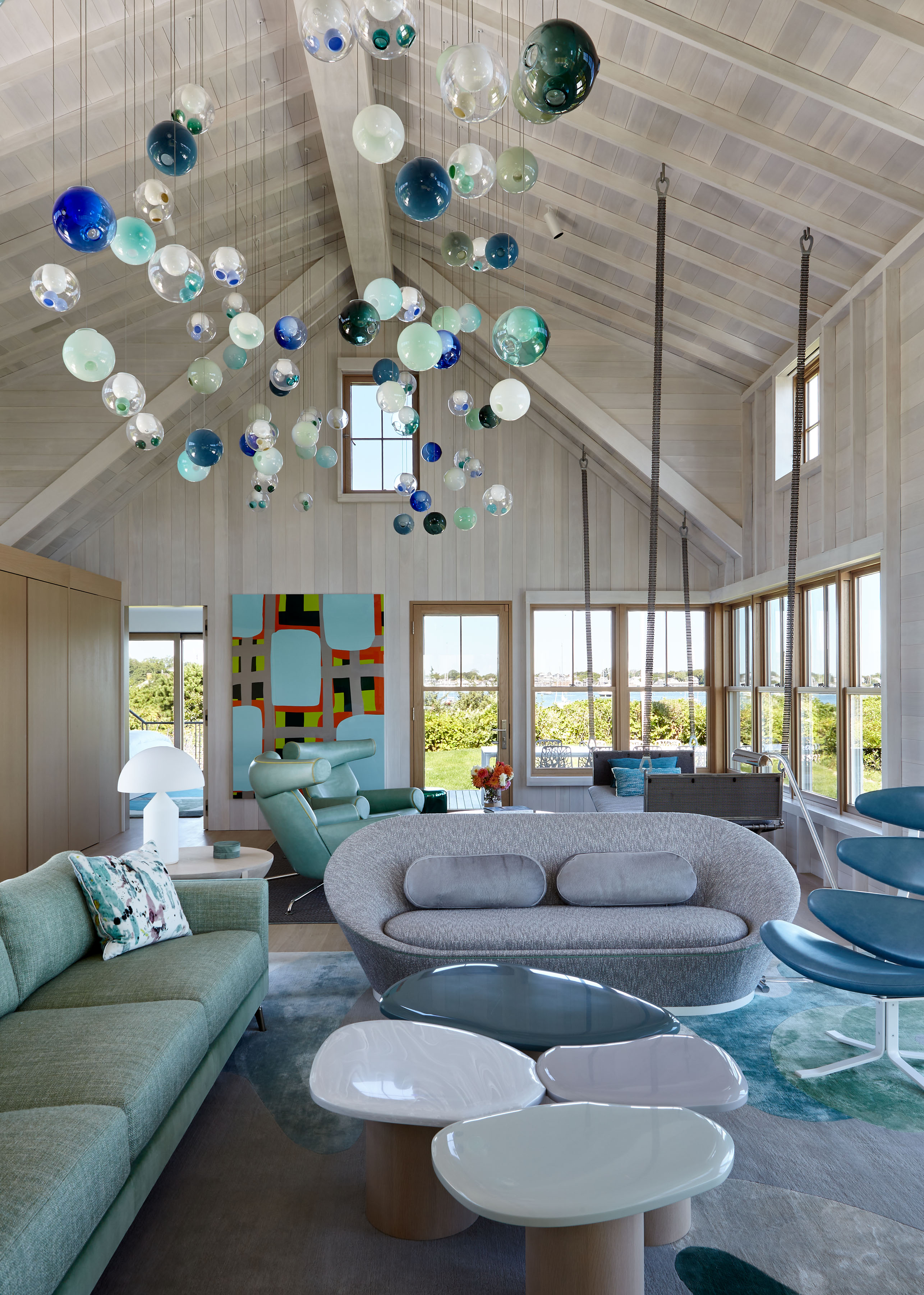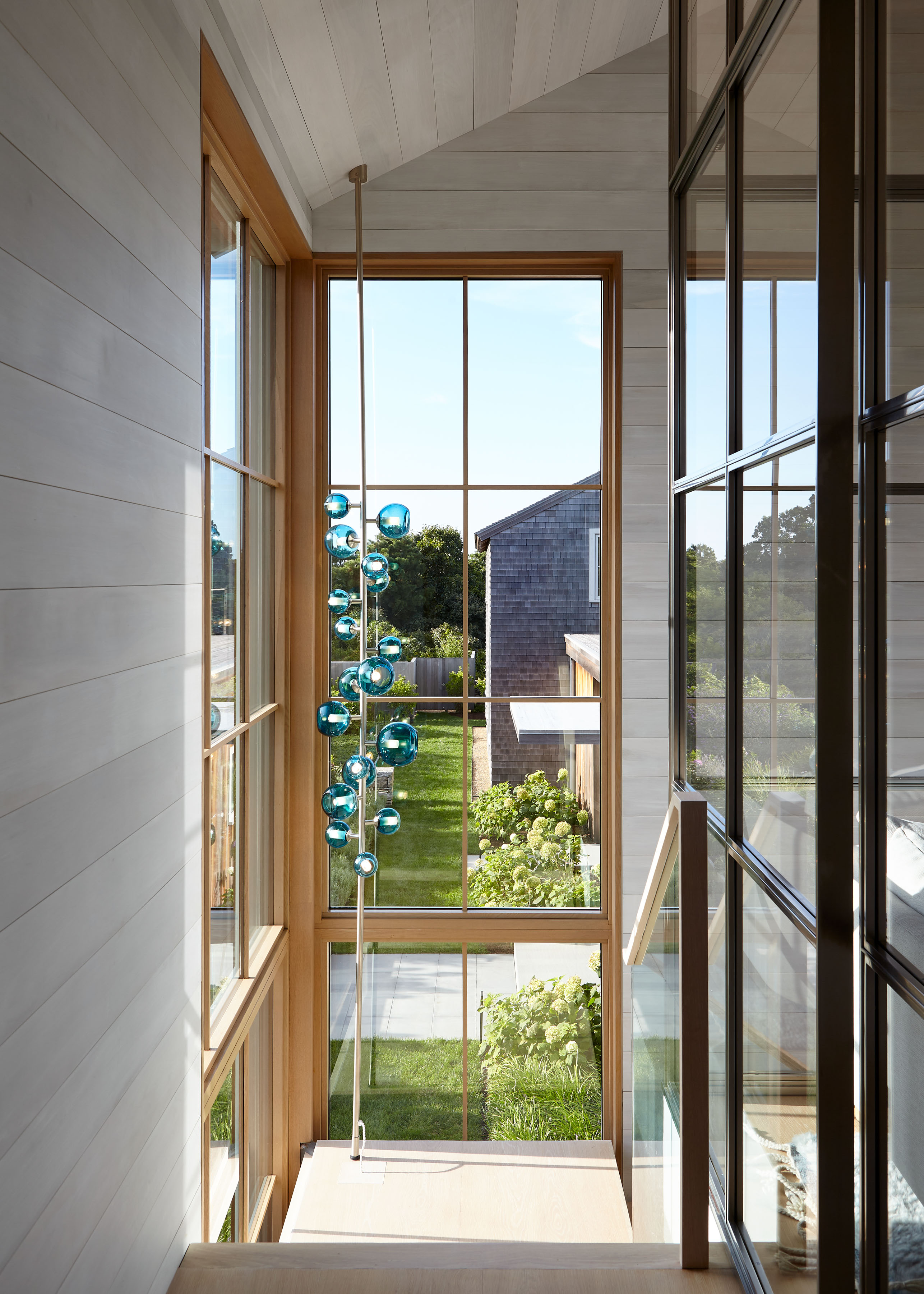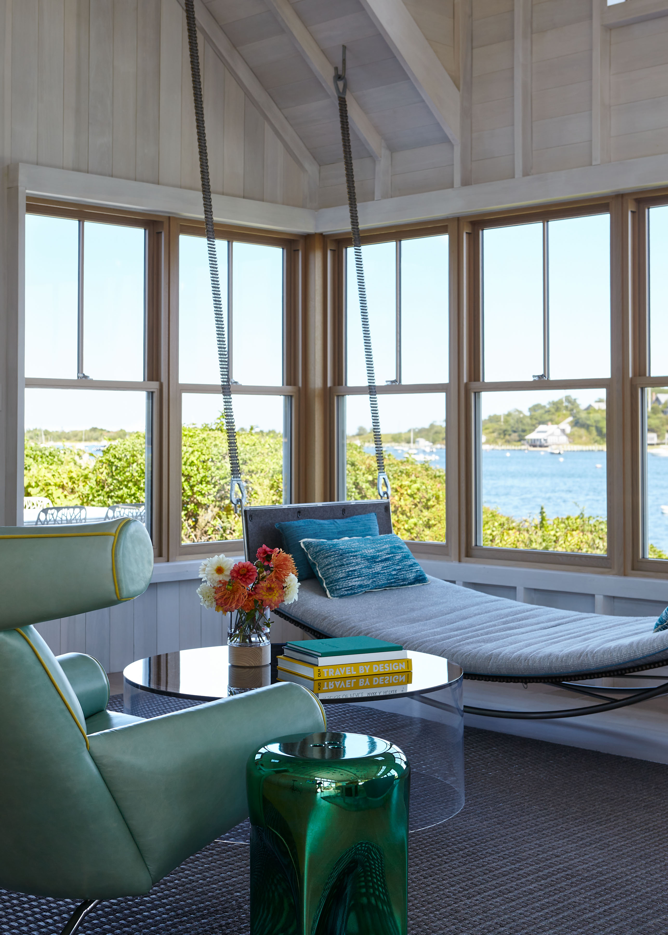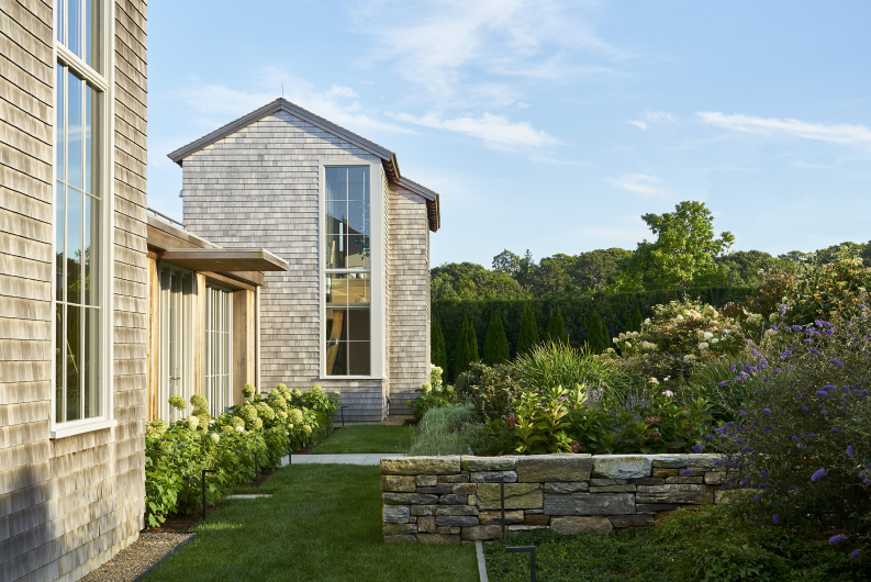 The main house is dedicated to entertaining an extended network of family and guests. Four “primary” suites extend to the corners, while a great room, kitchen and sitting room are centrally located with access to the main level pool deck. The life room includes a large, vaulted ceiling with asymmetrical “saltbox” roof form and two-sided fireplace opening onto the screened porch. Across the lawn, the cottage was re-imagined as a detached primary suite, granting the homeowners both autonomy and immediate engagement with the sea beyond. “Bluff Cottage” provides everything the homeowners might need when they are visiting alone or retreating from the day’s activities, while the main house provides amenities of a boutique inn, with large spaces for cooking, gathering, work and celebration – all with the privacy and convenience of its adjacent location, as well as access to activities along the shoreline, where an existing boathouse was refurbished to provide yet another layer of waterfront hospitality.