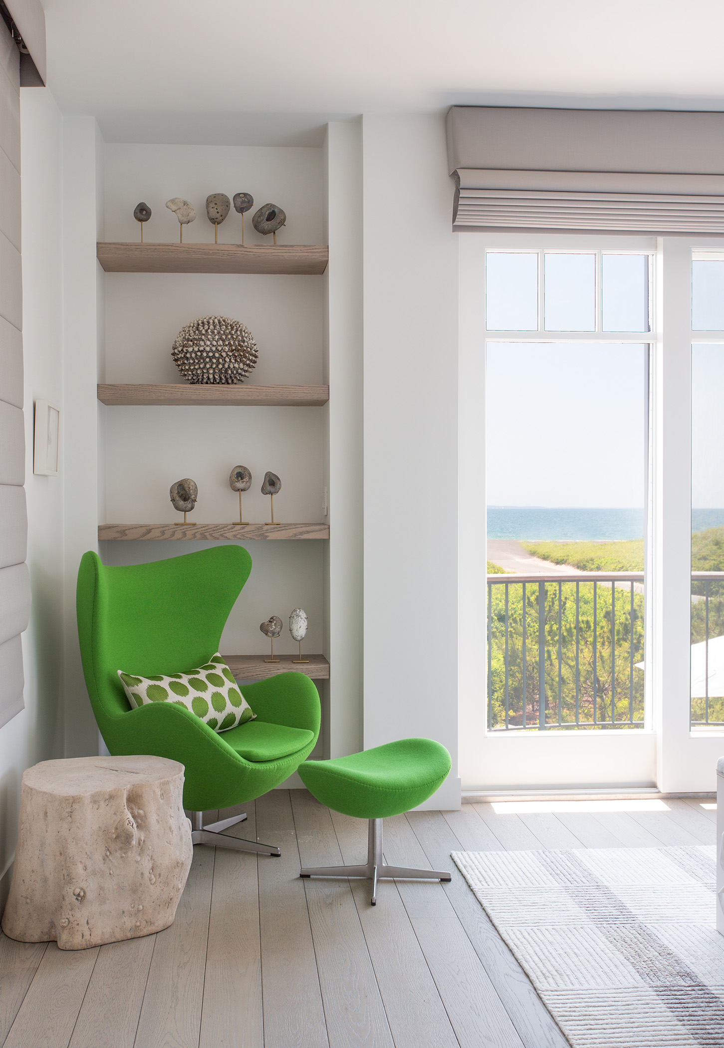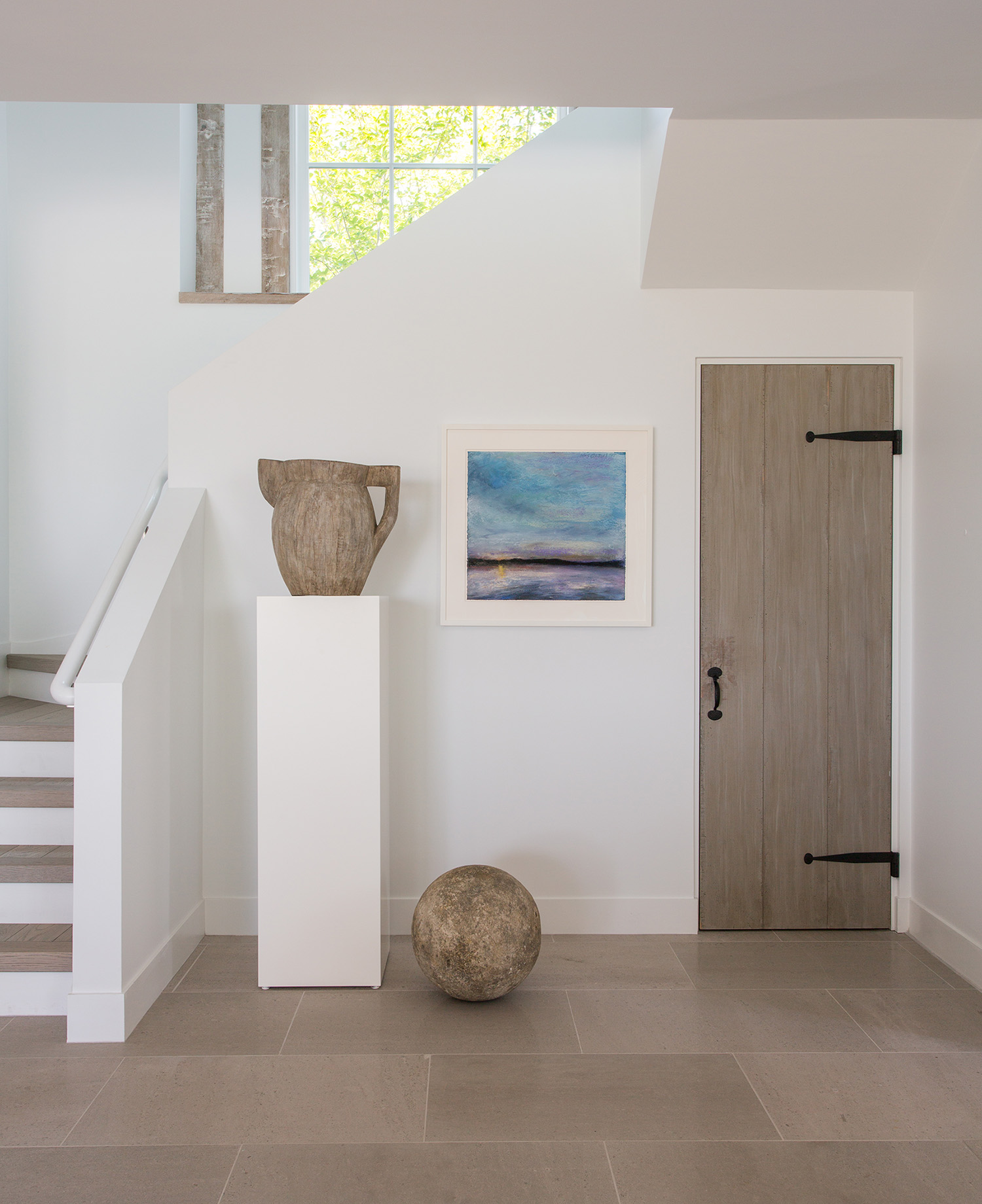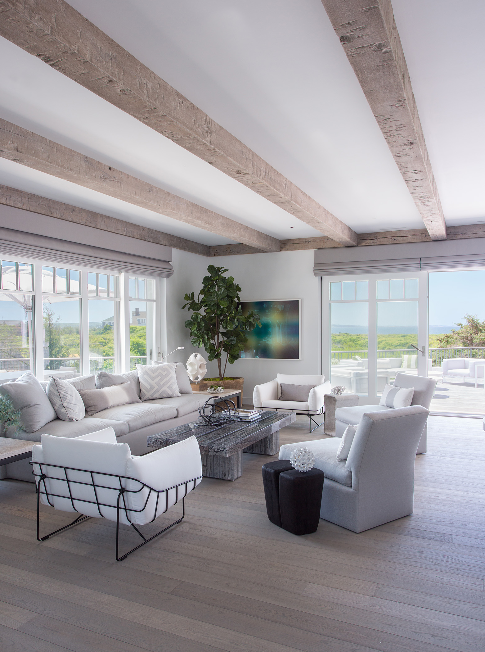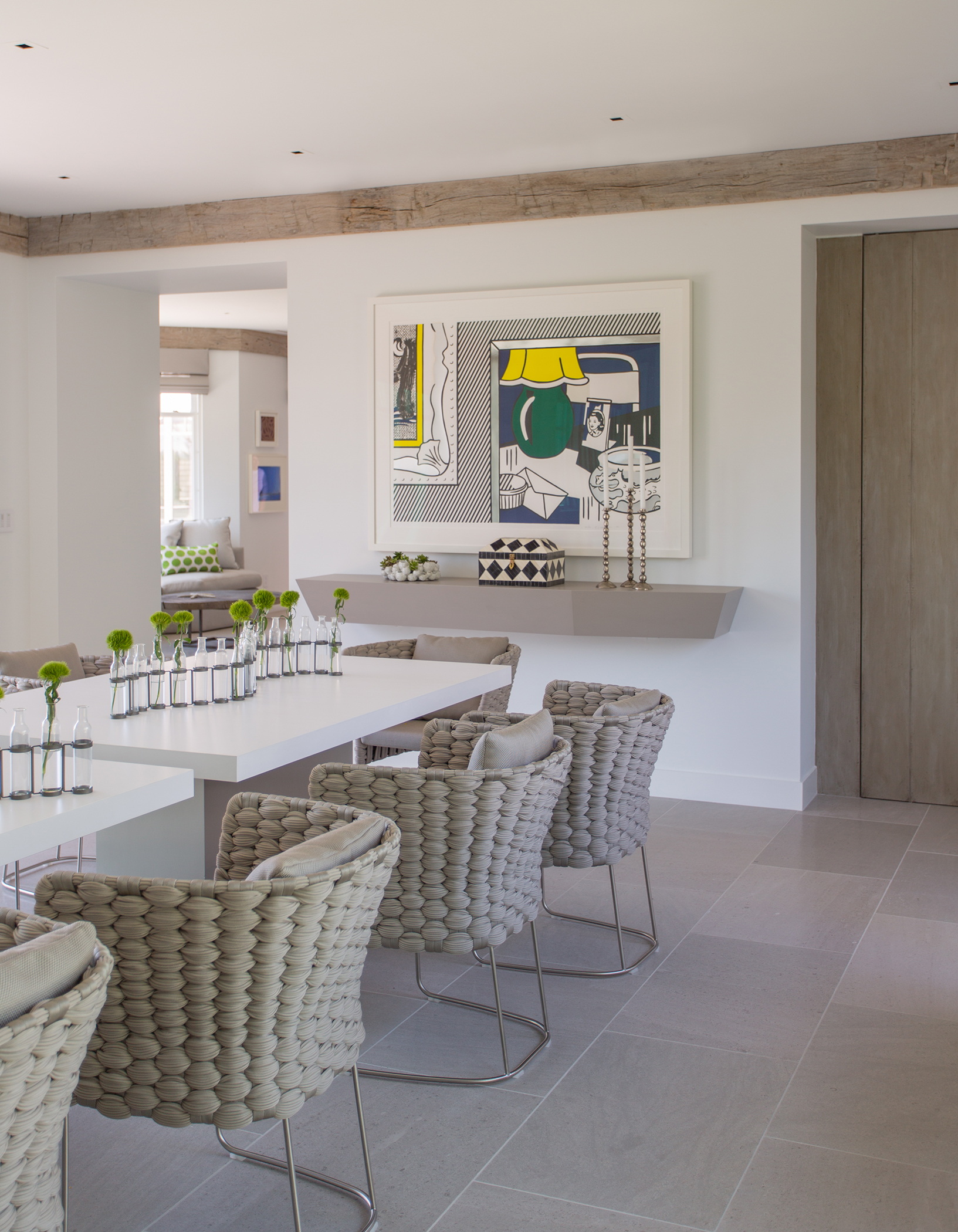 This homeowner wished for a house that spoke to the local Shingle Style tradition, but also felt open and comfortable for entertaining. Hutker Architects conceived a gambrel structure with two wings (one for family bedrooms and one for guests) arranged around a large central living area. Cottage style windows connect with historic homes in the area, inviting light from all four directions, while contemporary interior touches create an atmosphere suited to the family’s incredible modern art collection and active lifestyle.