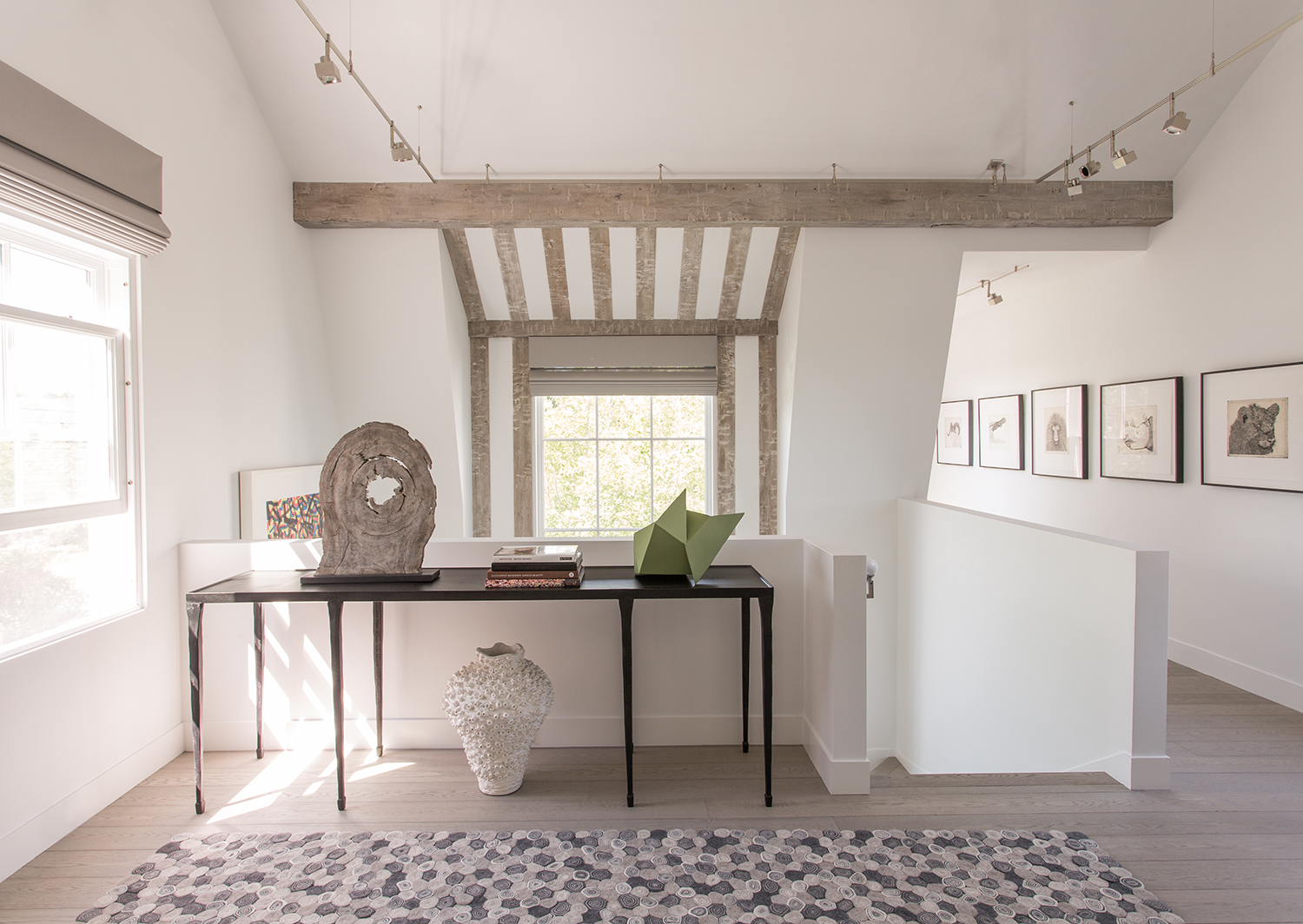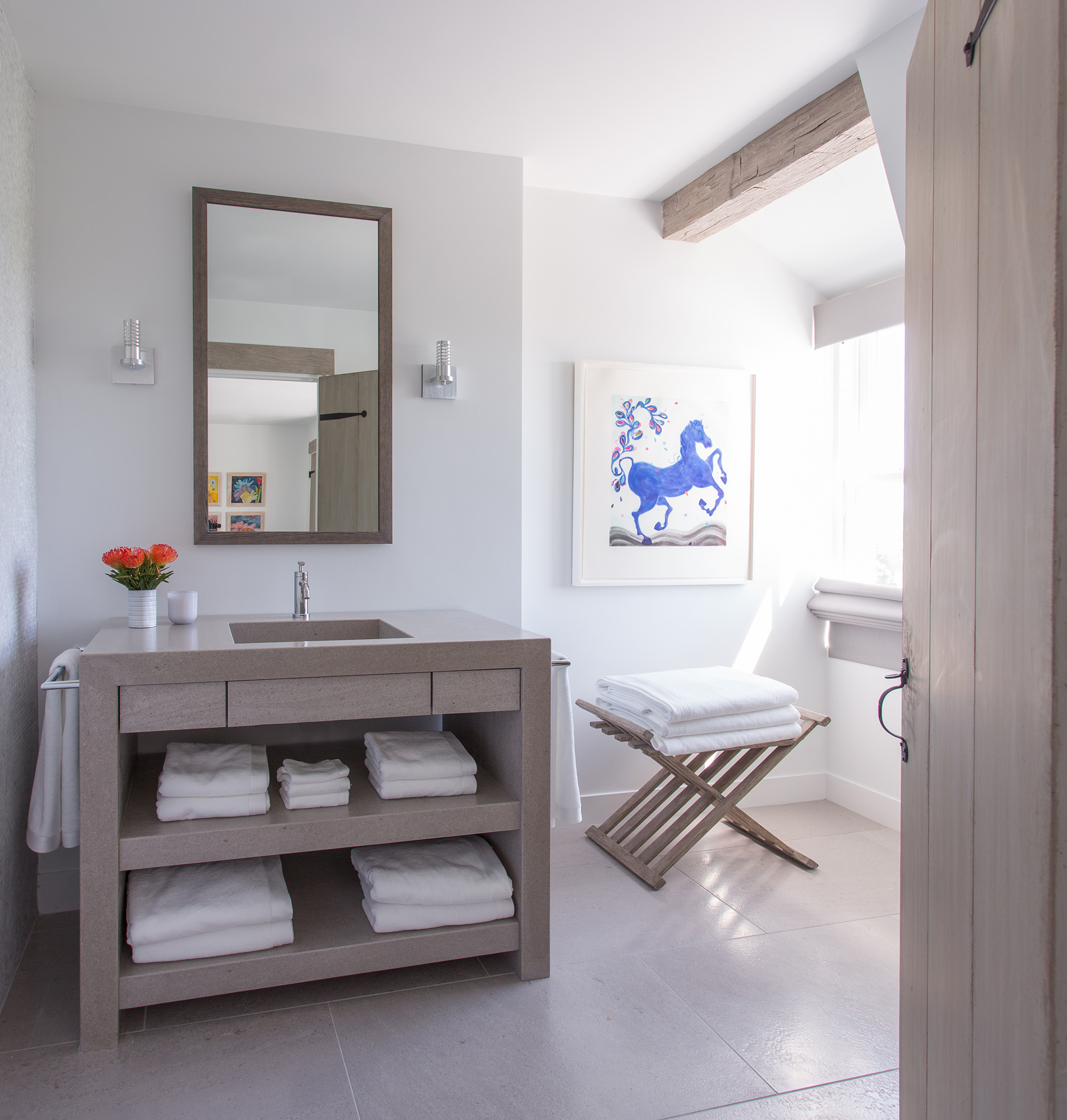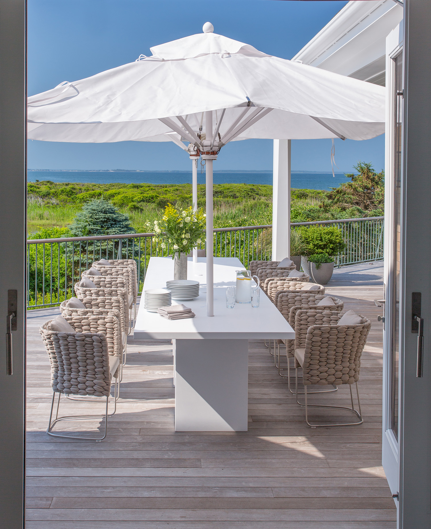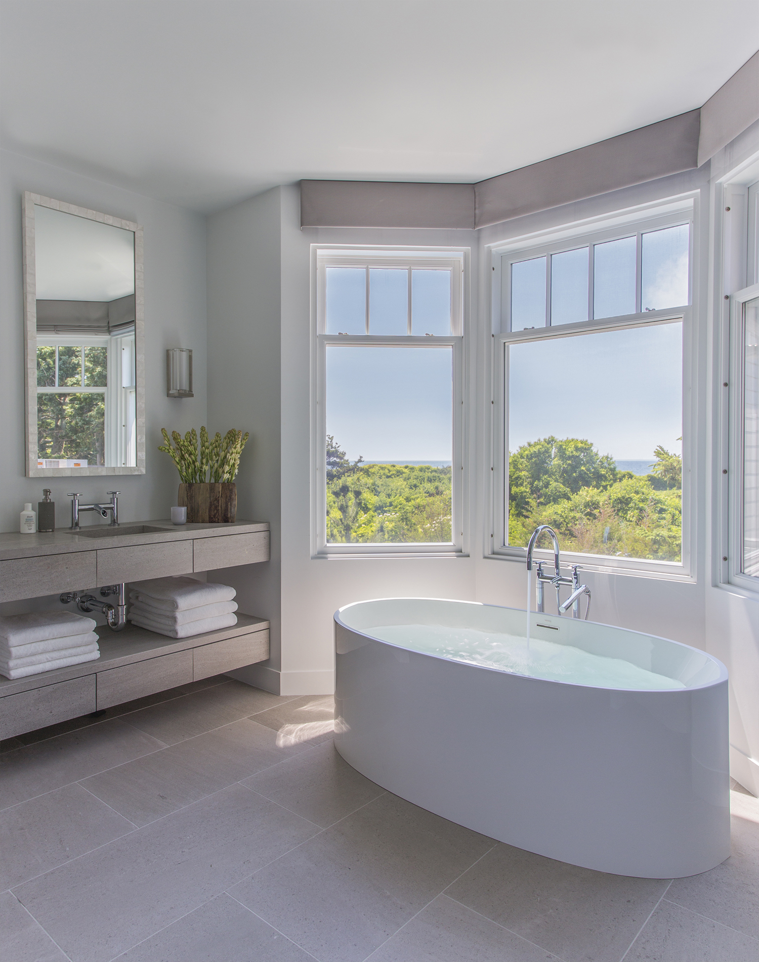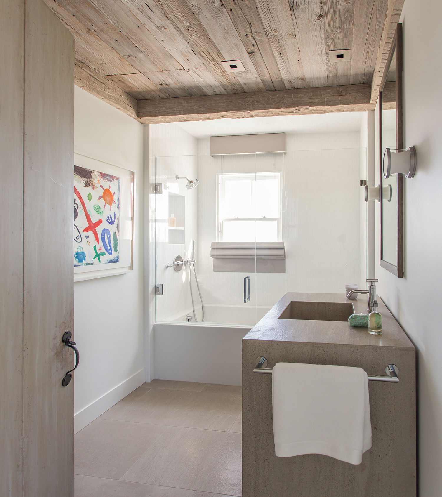 This homeowner wished for a house that spoke to the local Shingle Style tradition, but also felt open and comfortable for entertaining. Hutker Architects conceived a gambrel structure with two wings (one for family bedrooms and one for guests) arranged around a large central living area. Cottage style windows connect with historic homes in the area, inviting light from all four directions, while contemporary interior touches create an atmosphere suited to the family’s incredible modern art collection and active lifestyle.