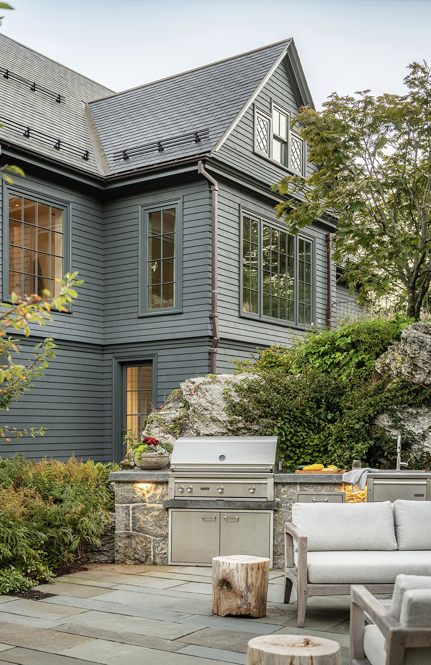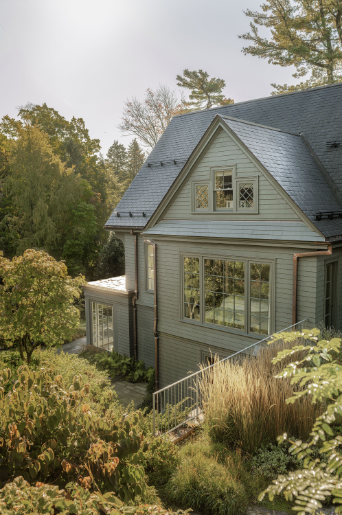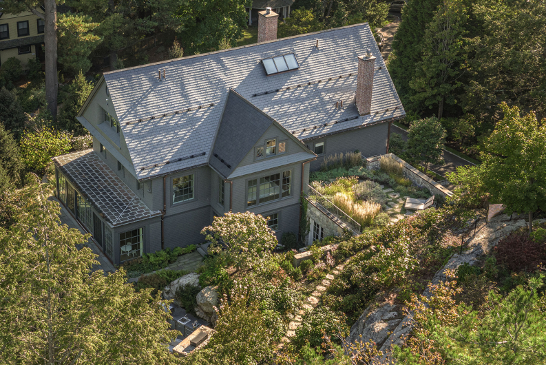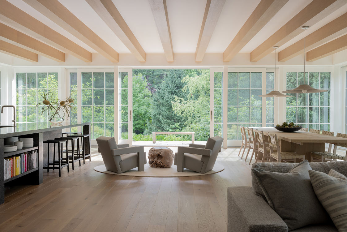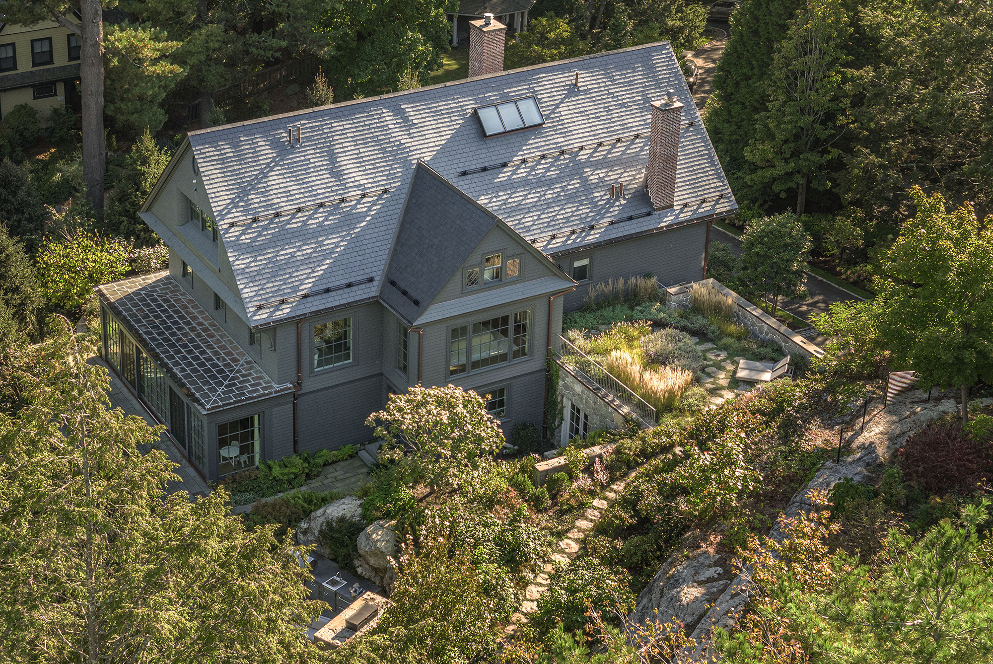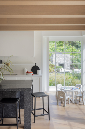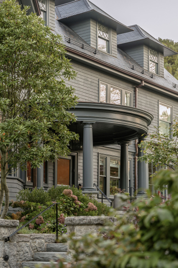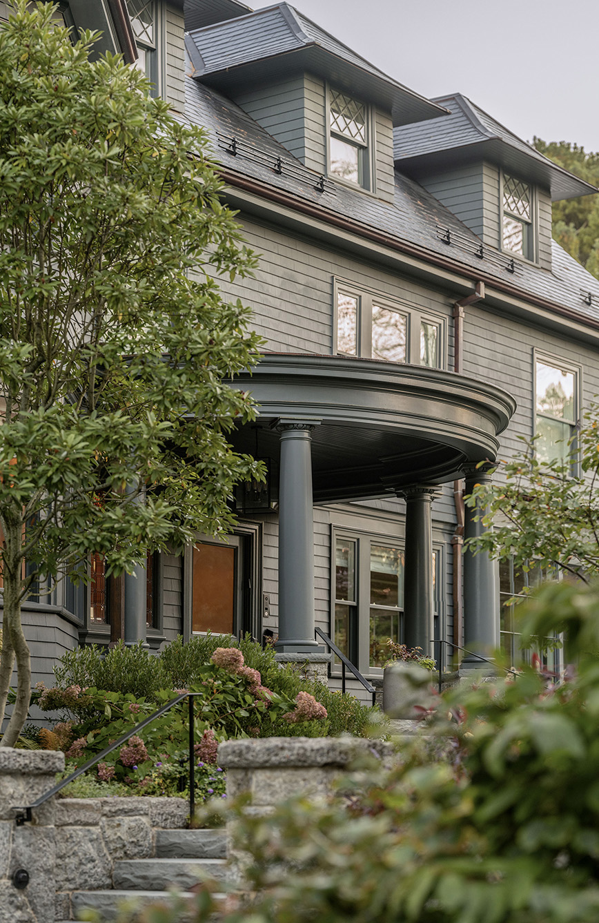 Built in 1898 in a thriving Boston suburb, this Victorian residence had, by the time its homeowners purchased it, grown tired and dated. Their goal was clear: restore dignity where it mattered and boldly reinvent the home to support modern living. The exterior work honored the home’s historic foundation while bringing it firmly into the present.  Inside, transformation took center stage. The once-compartmentalized floor plan gave way to openness and flow, anchored by a new “Life Room.” Inspired by an Orangerie, this expansive space combines kitchen, dining, and casual seating under oak beams and walls of glass. Mullioned doors open to restored John Charles Olmsted-designed terraces and gardens, dissolving the boundary between indoors and out. Here, family and friends gather in a space that feels both contemporary and deeply connected to the home’s character.