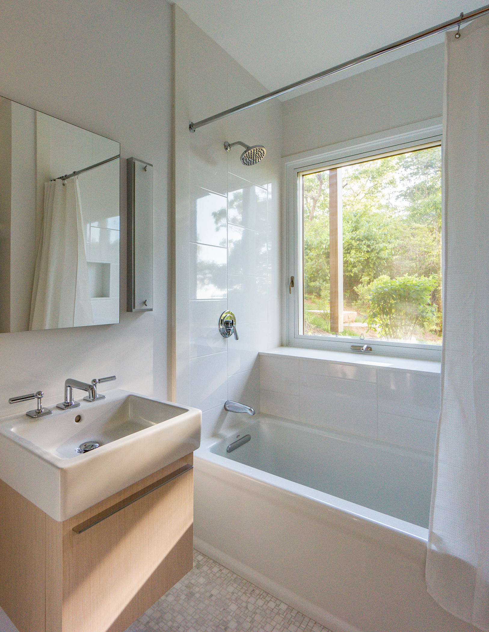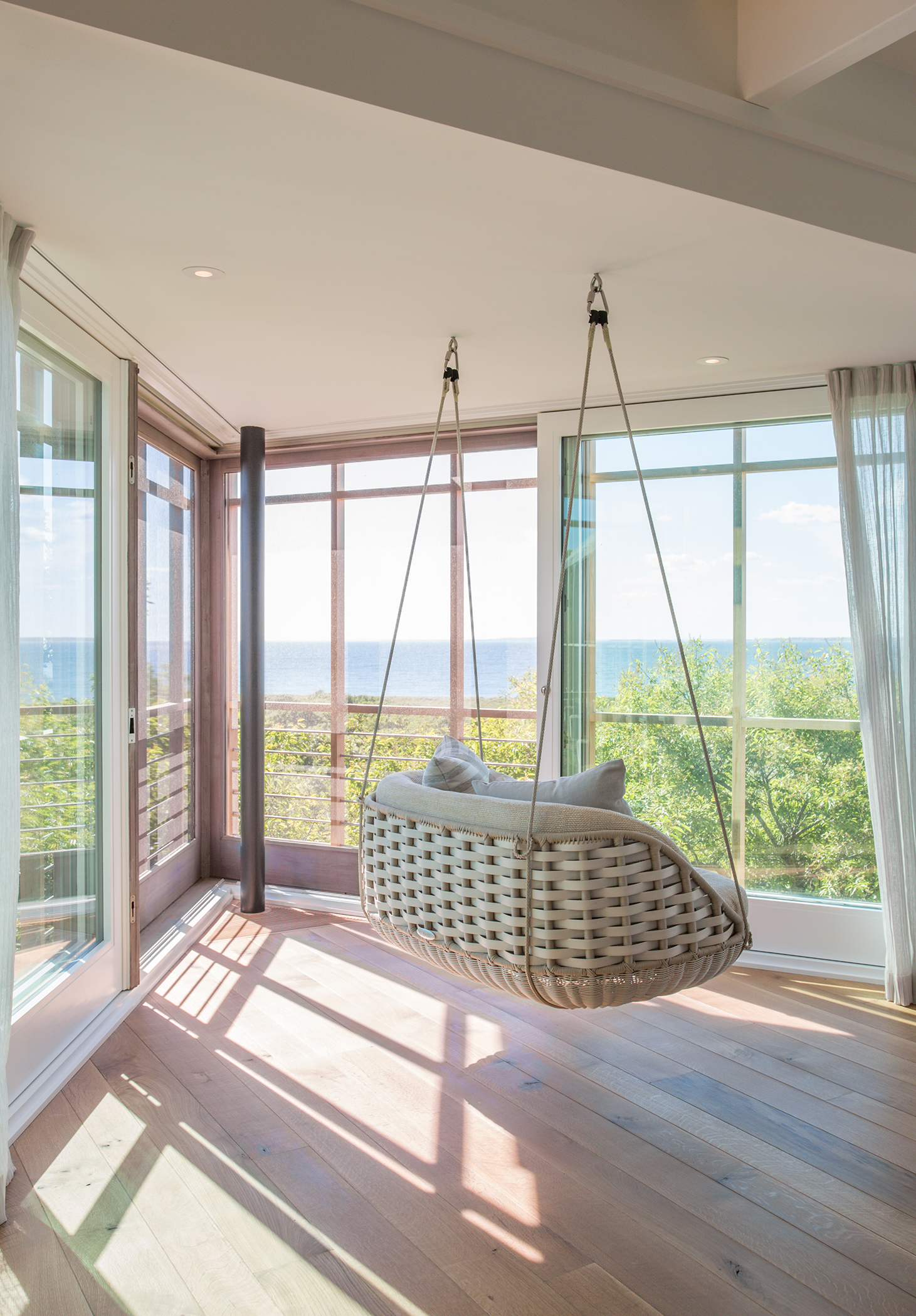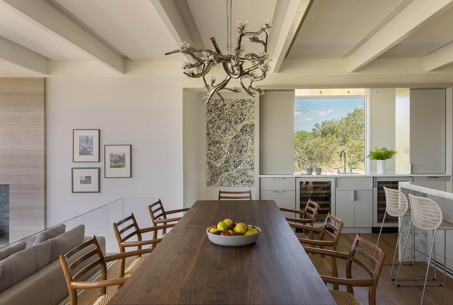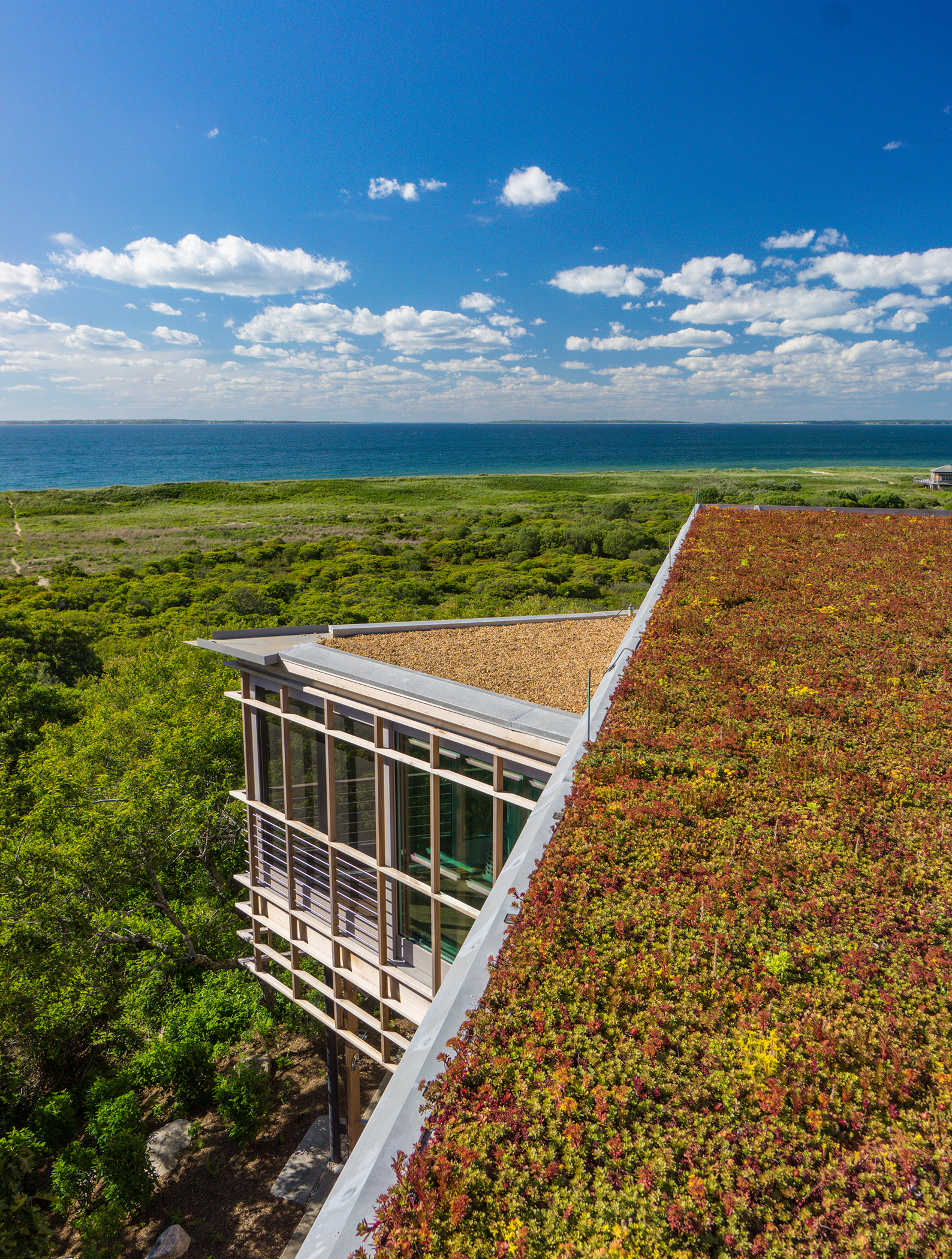 This home is the revival of an original designed by architect Steven Holl. Inspired by a passage in Melville’s Moby Dick, where Native Americans stretched animal hides over a beached whale skeleton for shelter, the house received a Progressive Architecture Citation in 1986 and an AIA National Honor Award in 1999. When the current owners acquired the property, years of neglect had taken their toll. Hutker Architects was hired to re-build the home in a manner that captured the spirit of the original. The team maintained Holl’s inside-out balloon frame – a rectangular prism with articulated wooden “bones” framing views of nature beyond, while incorporating features that add to its durability and narrative. Several defining new elements, such as an ambitious energy profile and additional living space, ensure that the home will prove both progressive and comfortable by contemporary standards.