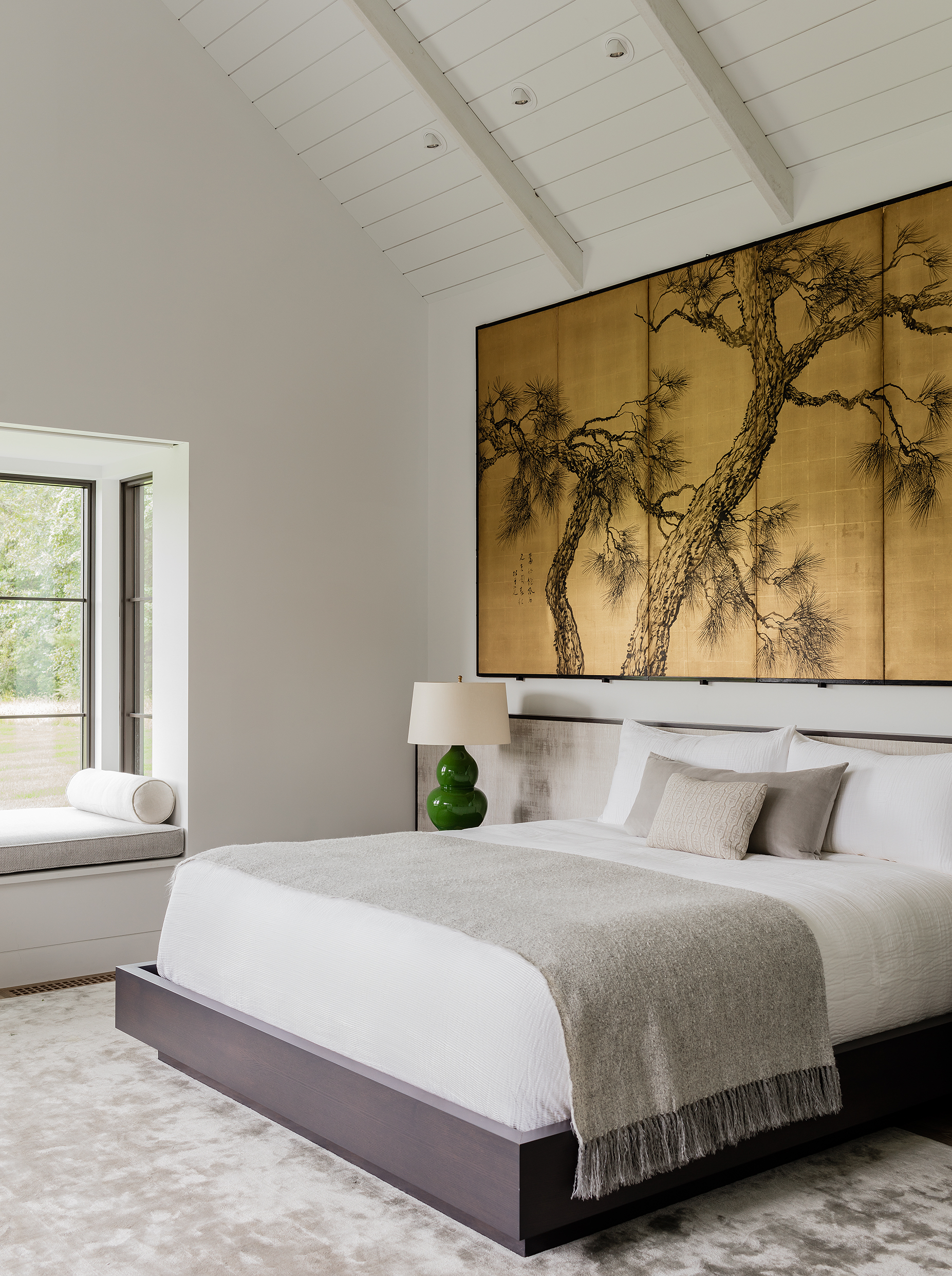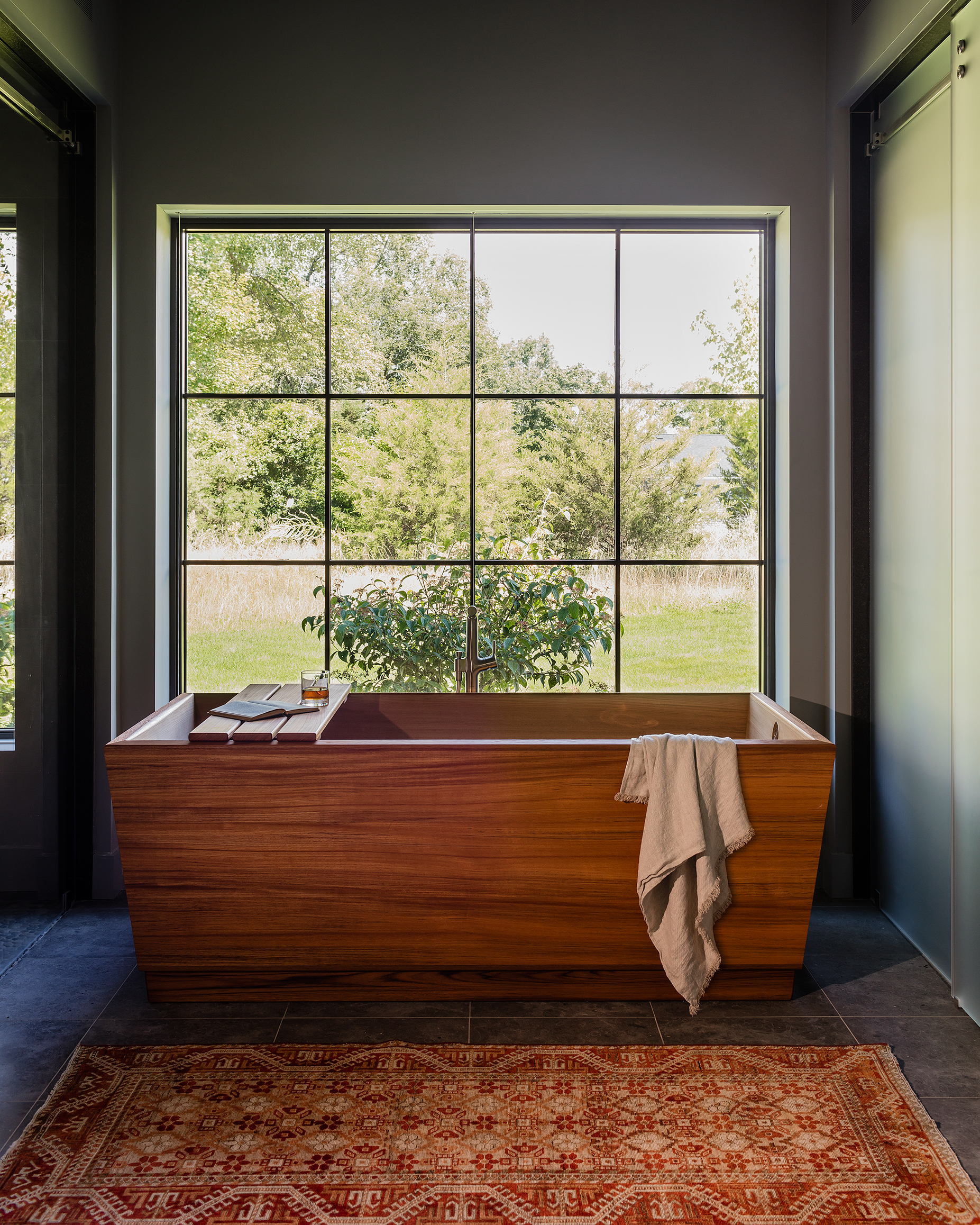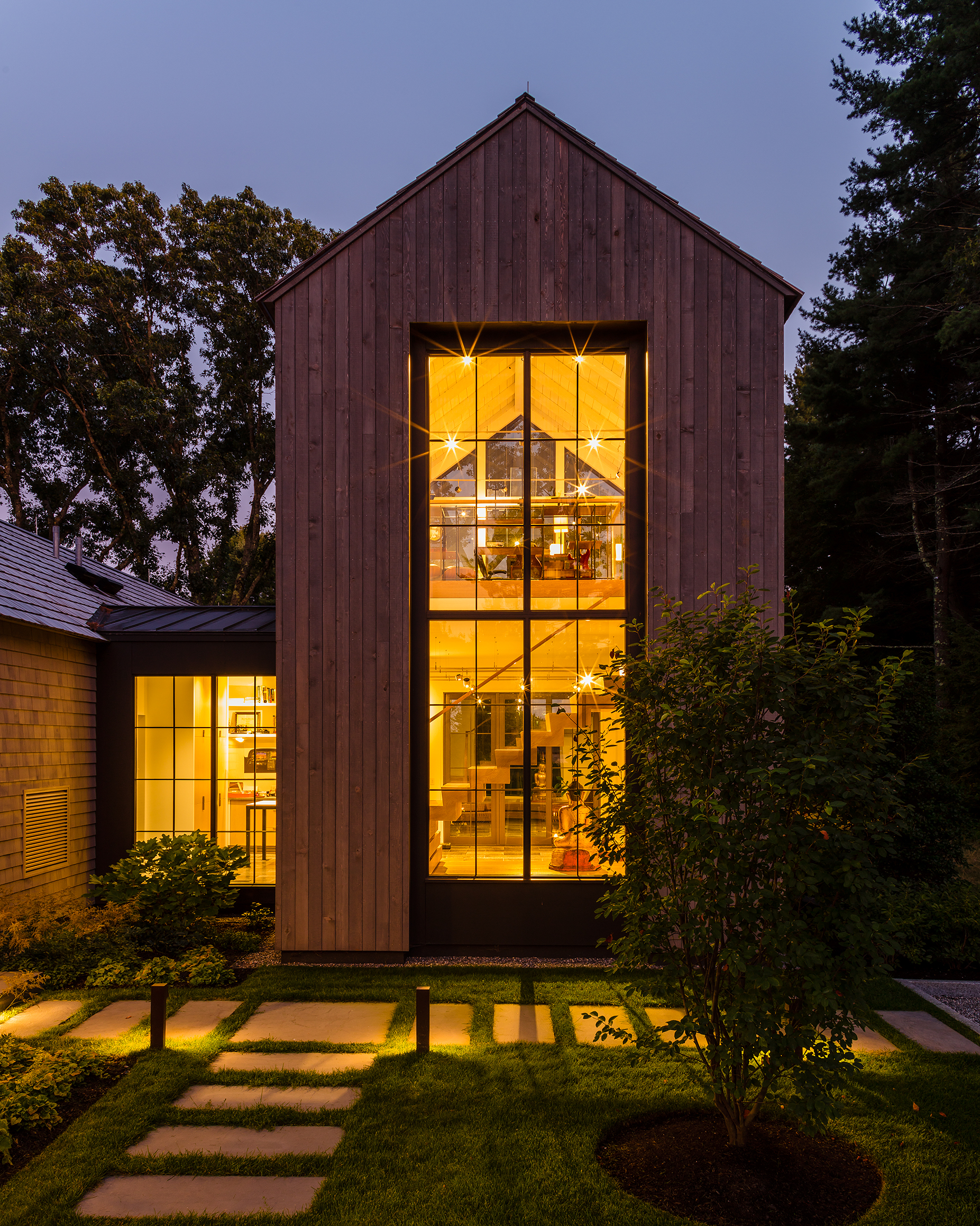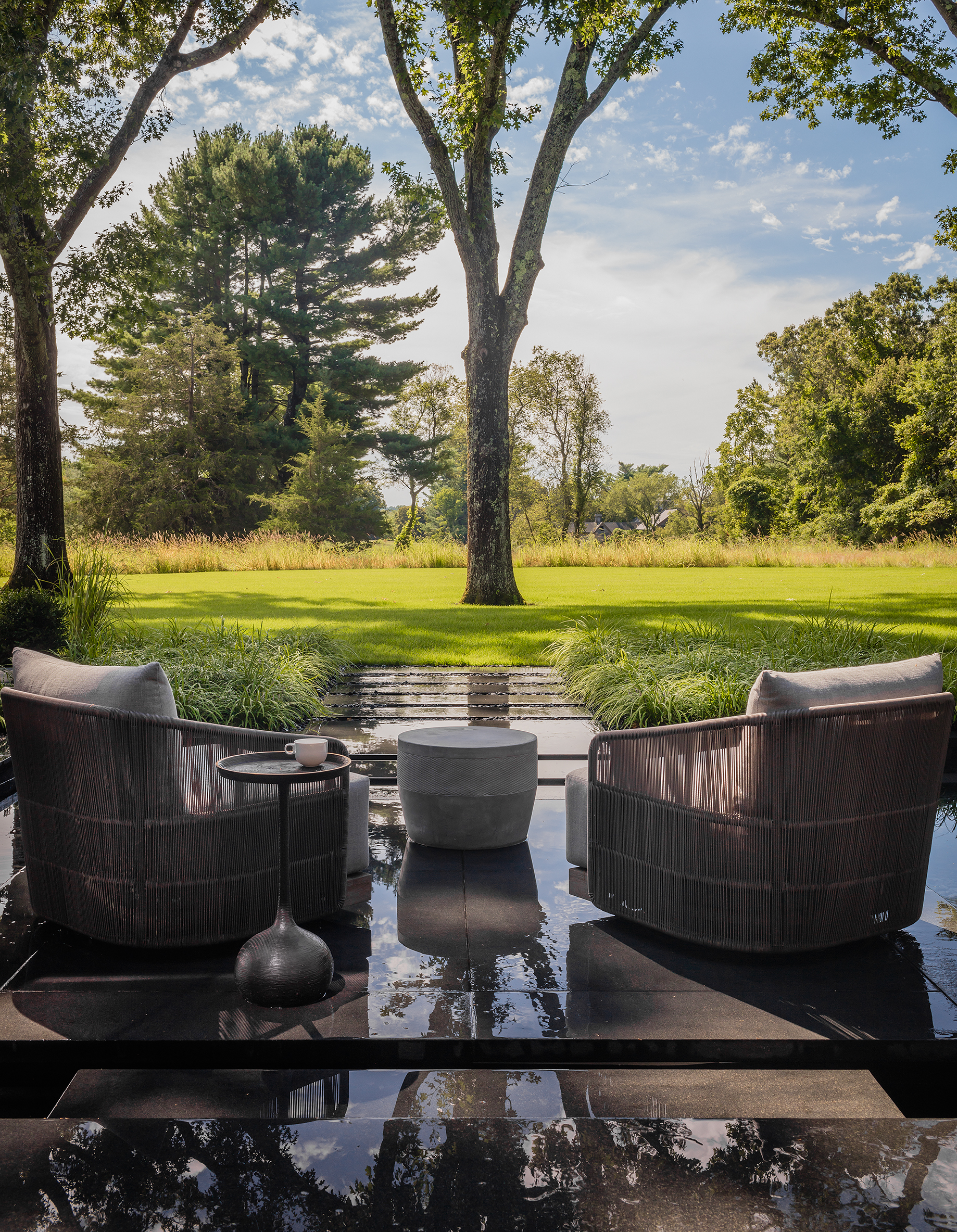 This home was designed to connect seamlessly with the outdoors while providing ample space to display a family’s incredible collection of contemporary art. Additionally, the clients wished for ample gathering spaces in the living and kitchen areas to spend time with their extended family. From entry, a gallery corridor runs the full width of the home, allowing for unobstructed viewing of paintings and sculpture while creating a circulation spine along which the home’s public and private spaces are aligned. Over-sized windows, skylights, and a water feature adjacent to the kitchen encourage frequent enjoyment of the home’s spectacular woodland setting.